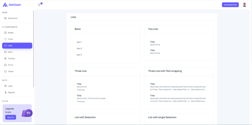 MatDash is a free Angular Material template crafted for developers aiming to create visually stunning and high-performing dashboards. With its clean code, Material Design-inspired UI, and pre-built components, MatDash ensures faster project completion without compromising on quality. It's perfect for startups, enterprises, and hobby projects alike.