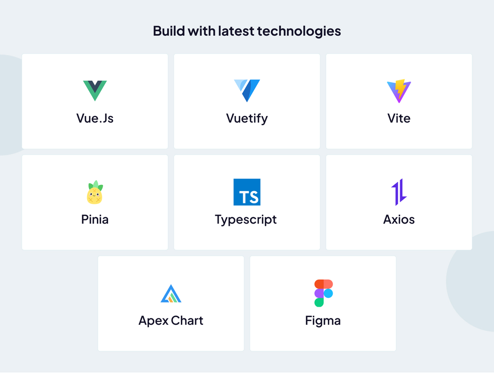 Checkout Live PreviewMatdash Vuejs Admin Dashboard is a comprehensive template that simplifies the creation of web applications. It leverages the latest technologies, such as Vue.js 3, Vuetify 3, Vite.js, and TypeScript, to ensure high performance and scalability.