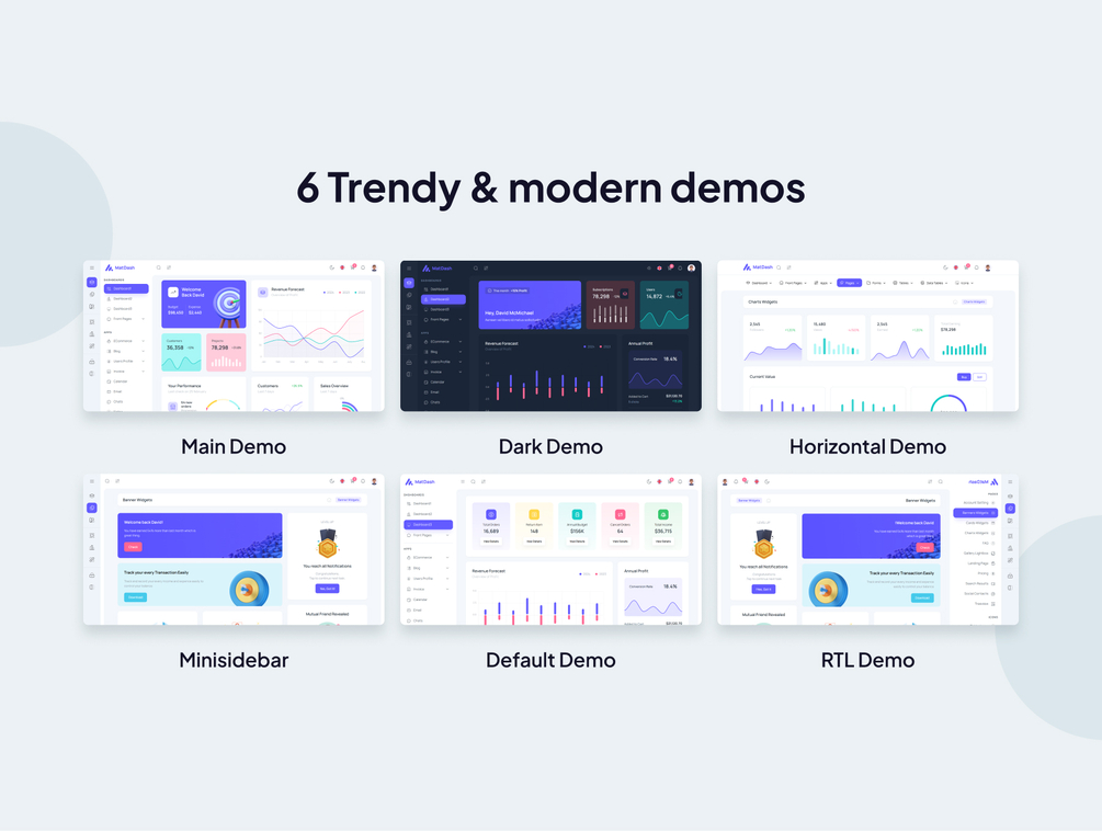 The template includes a variety of pre-built pages and UI components, such as interactive charts, data tables, and forms, which can be easily integrated into your projects. Its responsive design ensures that applications look great on all devices, from desktops to smartphones. Additionally, MatDash offers customization options, allowing developers to tailor the appearance and functionality to meet specific project requirements.
