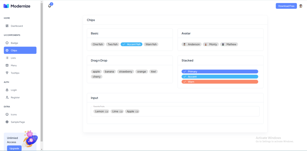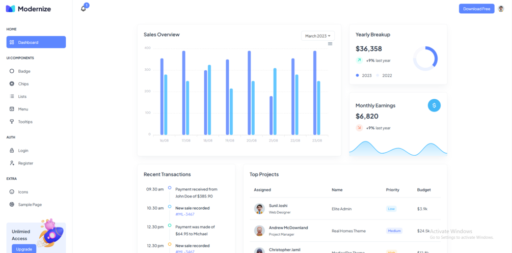 Modernize Free Angular Admin Template is a highly customizable and developer-friendly dashboard theme based on Modern designs.