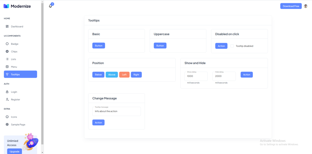 Some features of Modernize Free Angular admin template include: